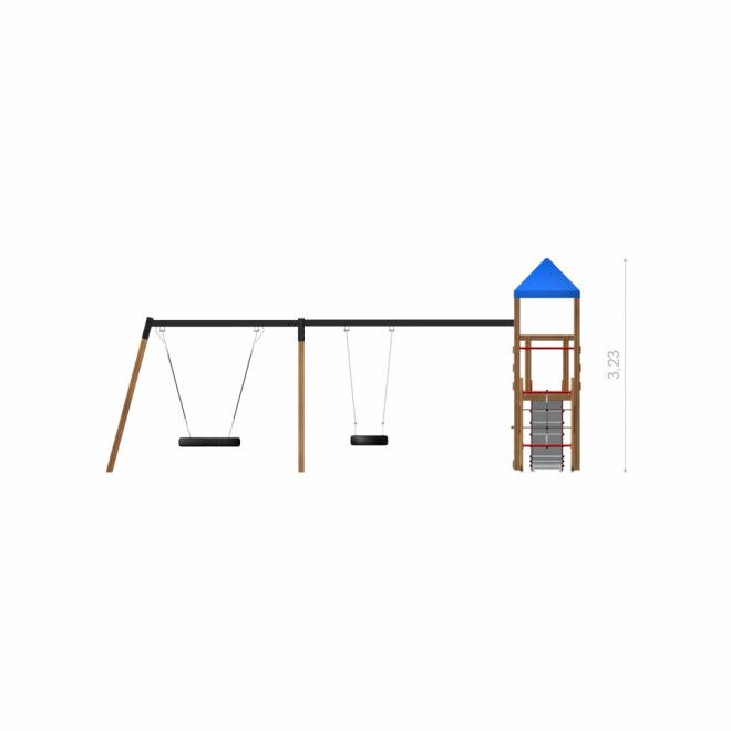 Playground Tower w/ Slide & Bird Nest (⌀ 90 cm) & Tyre Seat Swing - Front view