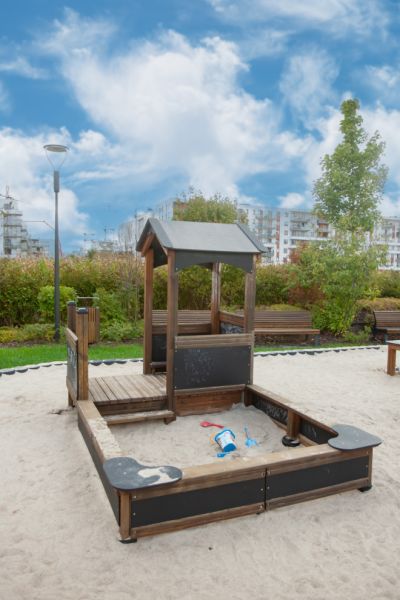 Villa Playhouse w/ Sandpit (black), Sandpits, Playground equipment | LARS LAJ® (19724)
