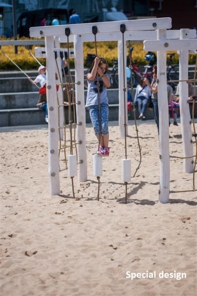 Yellowstone includes variety of horizontal climbing devices such as: honeycomb chain for climbing, made from a very strong and and the certified and highest quality chain, two different nets made of reinforced rope, with hot-dip galvanised fine-link chains, and ropes with knots to climb up. Each climbing element is safe, functional and full of joyful activities.